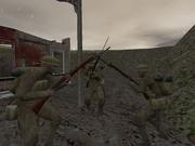 The Leprechaun has been working on a replacement map for the test map Swamp! The Germans and British take a break from the war to show off the details of the map - special thanks to all the beta testers that patiently helped with the screenshots. (In the screenshot: Hotel Security Guard, Sgt Garvey, Khaki Chum, Goettlicher Wind, Prime Suspect. Taking the shots was the_Leprechaun.)