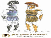 Troy: Divine Playground is back! We've been away all summer for our internships, but some members still managed to create content. Gus produced a quick video to explain where we are at, and we've got some goodies to show you as well.[VIDEO LINK AVAILABLE ON TROY WEBSITE] A couple of months ago we received a Hoplite model from Marco Hakenjos, and we modified it so that it would look like the Greek and the Trojan models we wanted. Here is a WIP of the two soldiers, as well as Dez concept arts of theses guys. You can also see the new long bow model.We also got some ingame screens to show. There is no T:DP HUD yet – it should be done in the next two months. T:DP will feature dynamic music. Here are some "layers" of the music you'll hear when playing. The frenzy music will play when you're in the heat of the action, while the quiet song will play if you're just slacking off your godly duty, admiring the landscape. [AUDIO LINK AVAILABLE ON TROY WEBSITE] Now here is the most important part of the update: we are opening some positions to work hard with us. We just finalized the schedule for our next term - the next four months - and we will need to be very productive to create the awesome final product we want. We need prop & character modelers, animators, skinners, mappers, texture artists and a 2D artist. If you are accepted as a team member you will have very clear deadlines and the opportunity to give your feedback on our currently playable version.