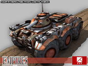 I'm back on solid ground and am here to stay (look at the team page or previous posts if you don't know what I mean).Work is still progressing well. The big push right now is to get all of our vehicles done. Coding for vehicles is nearly complete, and all texturing is almost done. The Imperial Medium Tank is the only one drivable at the moment, but that will change in a short amount of time as the first to be done is always the hardest. Getting the rest of the vehicles in game is simple work as they only need to have their models imported. They'll reuse all of the code that was forged for our vehicles which was done for the initial import of the Medium Tank.Writing the vehicle code has been a monumental task. We've chosen to take a more simulation approach compared to other vehicle heavy games like Battlefield 2. We're talking about fully customizing a vehicle's weapons, armor, and engine via a unique customization GUI, and our damage system takes into account many factors besides just a projectile's damage. Those in the IRC channel managed to get a sneak peek of the vehicle customization GUI, but I'll post updated screenshots of it here within a few days. Also, check back soon for screenshots showing in-game footage. For now, here are some vehicles renders to hold you over.