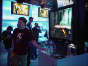 We are pretty caught up with E3 (the Electronic Entertainment Expo) again this year. Half-Life 2 Xbox is playable on the show floor, and lots of people are trying their hand at the Gravity Gun. We can't wait to get the game into the hands of Xbox owners.Our HDR (High Dynamic Range lighting) demonstration of HL2's Lost Coast is also on display. This soon-to-be-released area of Half-Life 2 introduces a new character, whom we first mentioned (in the form of a concept sketch) hereAbove, left: The lovely and talented Robin Walker, Valve game designer and developer, showing off The Lost Coast at E3.Above, right: The Lost Coast fisherman as he exists today.