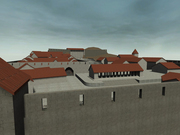 Finally, the first ever map screenshots. These screenshots are from the early version of the 326 BC map based on the stronghold concept from the last news report. You can see that it almost looks totally different since we wanted the map to feel authentic and actually place you back in time when Romans ruled the earth, so to speak.There are a couple of things I must add. Since this map is at a early production stage, you will see that the buildings have no doors, and windows, while there also are no real detail in the map. It looks wide open and empty, but we reassure you that this map will be populated with lots of details like market stands, statues, pottery, plants, and possibly civilians. Thanks and enjoy. We hope to have some ingame screenshots soon and a lil video showing of some new features.