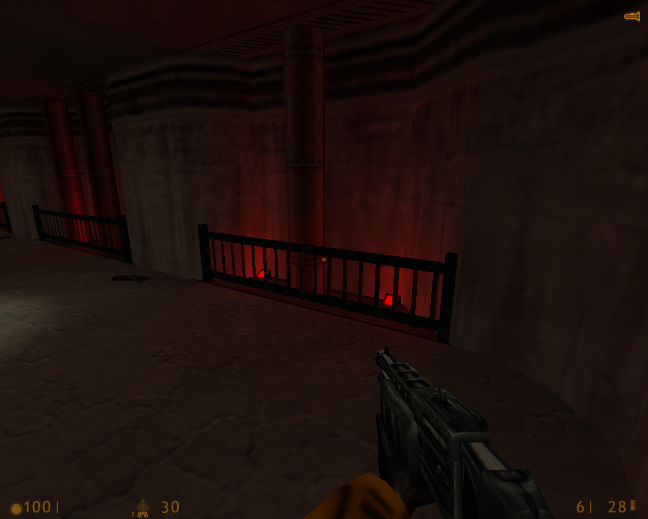 The overall size of the map is quite small which allows for some intense game play. It is about the size of one of the smaller standard HLDM maps.