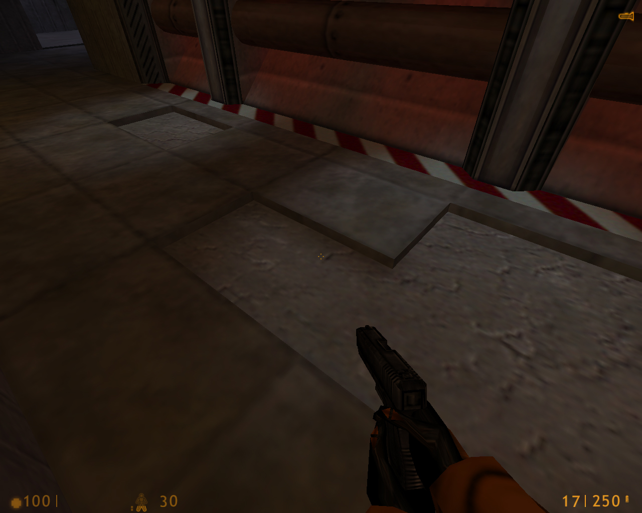 Hugh did a very good job of using an assortment of textures. There is no place in the level where a certain texture is over used. There is a nice variation of the standard Half-Life texture PAK. Although there are some points in the level where it could have used a bit more color, I have to say it was very well done. I could only find one mis-aligned texture.