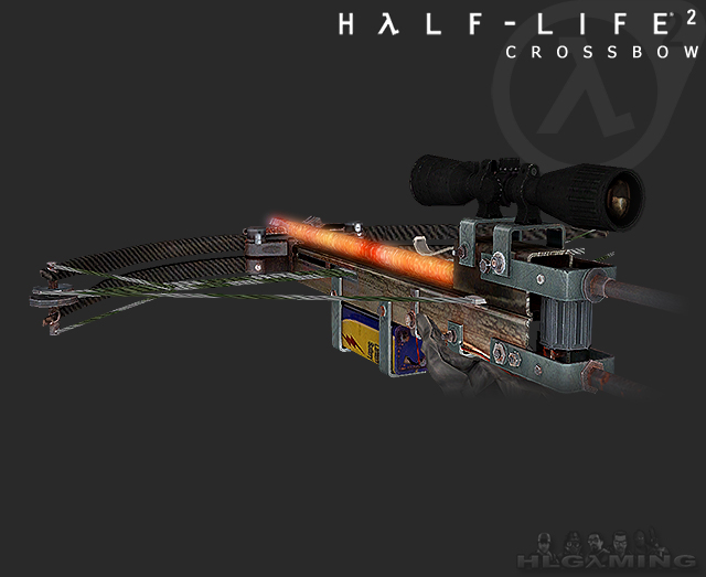 The last of the classic weapons, but definately not least. The Crossbow is Half-Life 2's sniper rifle. It's equiped with a burning hot bolt, so you know it's powerful. Use the secondary fire to zoom in the scope, pull the trigger and watch the burning stick pierce through the Combine Soldier and stick to the wall. Awesome!