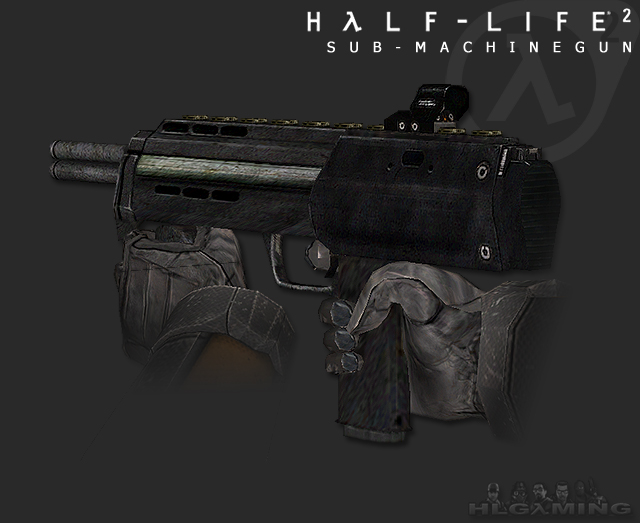 This new MP7 sub-machinegun is the replacement for the MP5 back in Black Mesa. It's got average firepower, the accuracy is pretty decent, and the reload time is pretty quick, so remember to strafe and shoot at the same time, and stop behind something to reload. The MP7 has a built-in grenade launcher, it will launch grenades that will explode on impact to a surface or enemy.